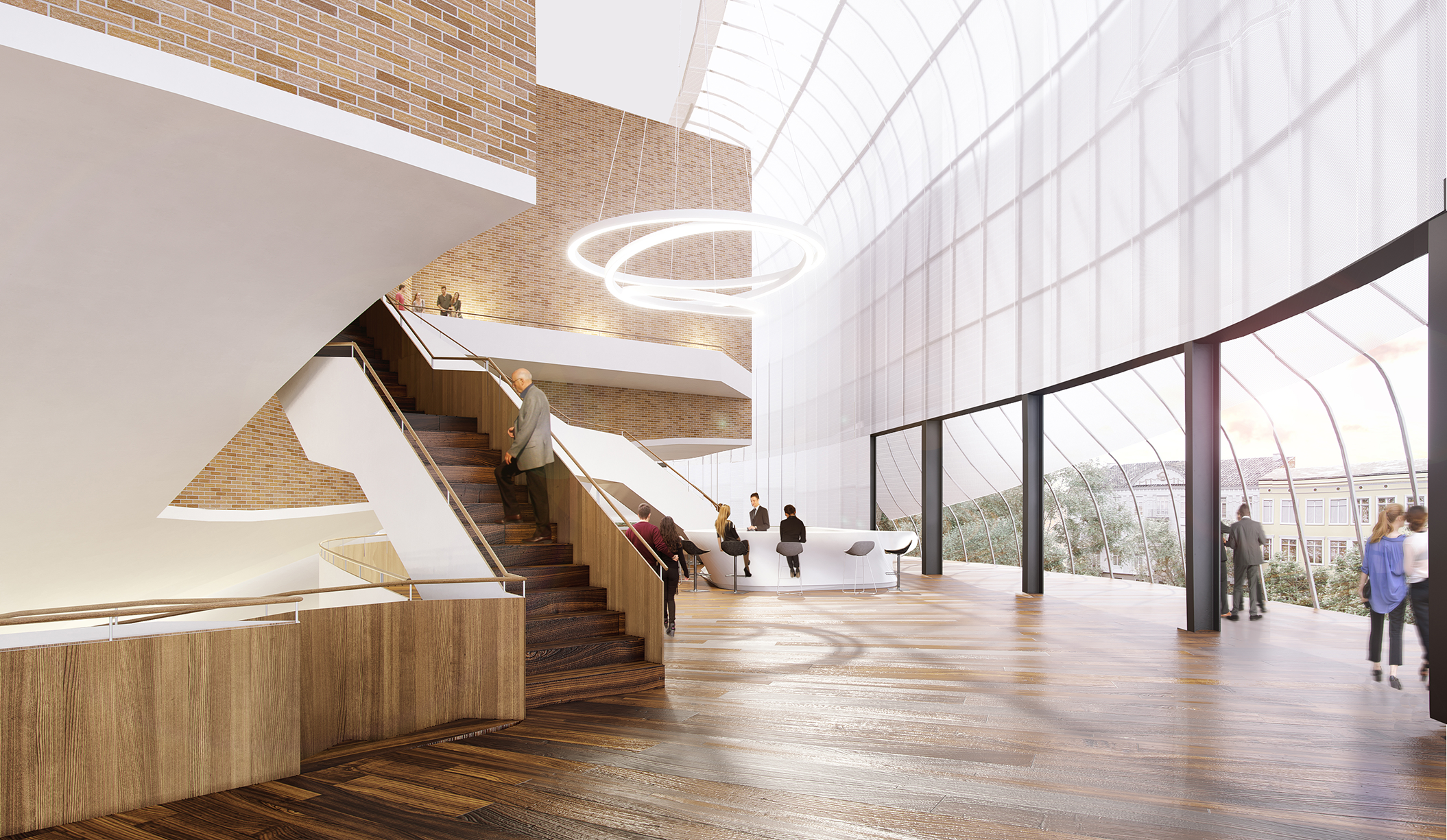 Our proposal for this large cultural insitution has been to reconnect the Gasteig with the city of Munich. This has been achieved in several ways. Functionally, by attempting to bring life to the western part of Rosenheimer Strasse, open to the street, and creating a great terrace that will attract the people to visit it and stay. Visually, this terrace is open to the river, to the view over Munich and to the Alps on a clear day. By opening up and clearing this area from interruptions, this terrace, also open and connected to the great lobby and foyer, will be full of activity. The existing Hall has poor acoustics: arriving at this innovative solution has involved a highly collaborative design process between Architect and Acoustician. In our opinion, this collaboration is essential when designing an innovative concert hall that doesn’t involve the traditional rectangular ‘shoebox’ shape. The first modification to the main room involves transforming one fan shape room into two rectangular shoeboxes. This involves extending the central ‘side walls’ to form a ‘v’ or ‘ships bow’ in the centre of the room.